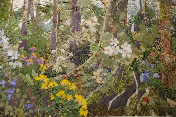 Will post more about the experience later, but for now just wanted to show you these incredible works of art we saw at the show.  They were created only with plant parts: flower petals, leaves, bits of stem, etc.  Everybody who saw them yesterday was wishing they were for sale, but alas, they were simply there on display.