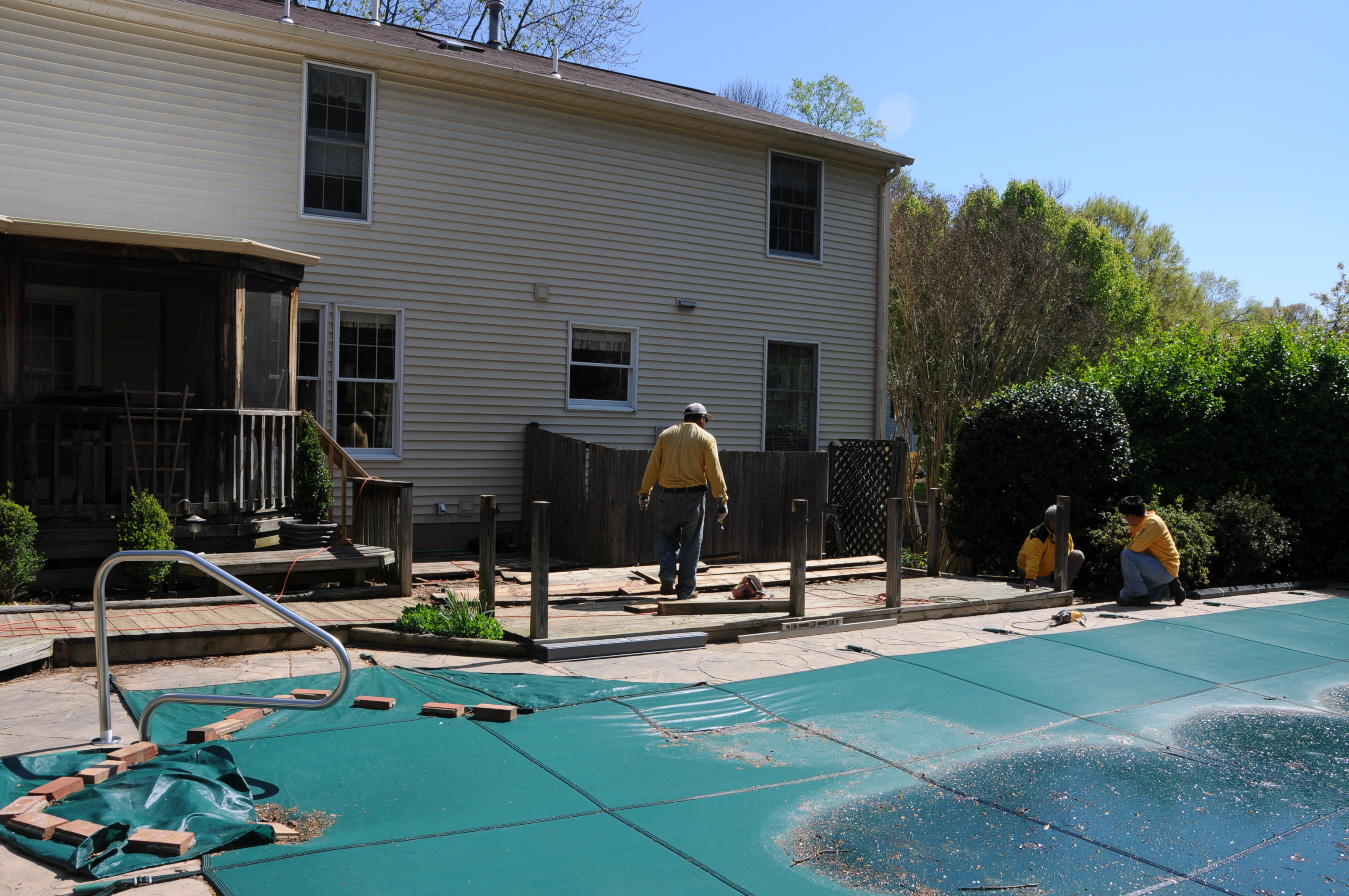 So anyway, it’s getting ripped out and replaced with brick pavers.  Now that our son is older, the railing between the pool and the deck will not be replaced at all, which should give the whole area a more open feel.