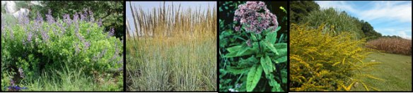 smooth sumac, little bluestem, eastern redcedar, wild blue indigo, indian grass, Joe Pye weed, goldenrod, fothergilla, St. John’s Wort,