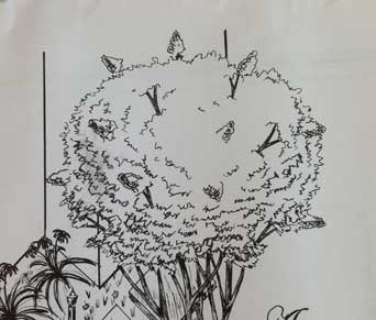 I drew this for my first landscape design class — Landscape Graphics.  I’m not sure whether this crape myrtle is more likely to detonate or float away into the heavens.  Laegerstromia x ‘Nuclear Mushroom Cloud’