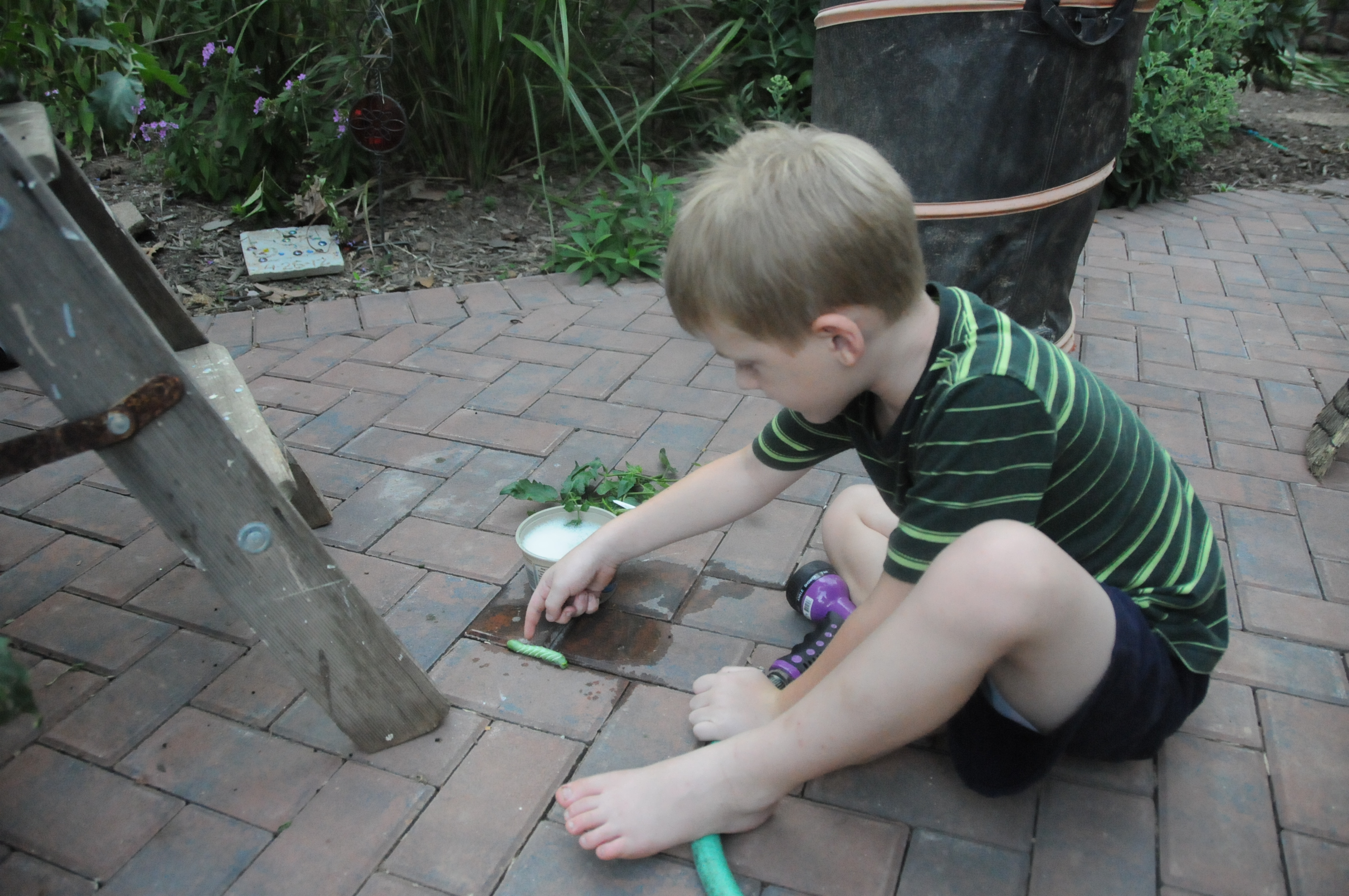 Horror gradually turned to cautious fascination as he helped me find several other hornworms that were feasting on my plant.