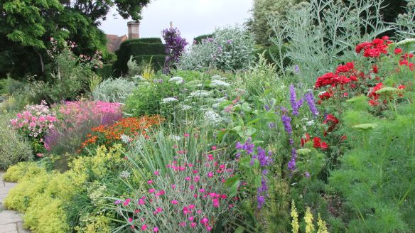 Now, I’ve never been a big fan of English perennial borders — not because the plantings aren’t magnificent, but because they’re always laid out along a flat, straight axis. Garden paths that resemble I-80 through eastern Nebraska are not really my cup of tea. Perhaps because of my upbringing in the hills and woods of the Piedmont, I prefer a bit of curve or rise or dip in my garden experience, but whatever.